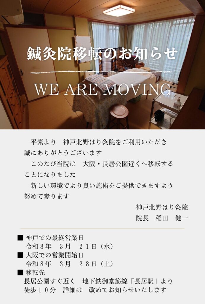 ■鍼灸院移転のお知らせ(神戸から大阪・長居へ)