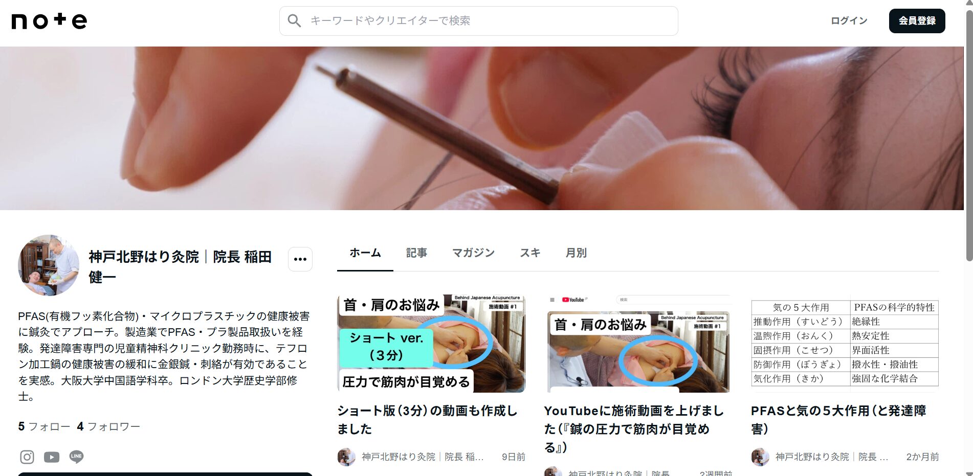 ブログ・お知らせ 2025.11.17 お知らせ YouTubeチャンネルを設置しました 2025.11.17 お知らせ note(ブログ)のページを設置しました 2025.08.25 お知らせ Square予約システム Square Online Reservation 2025.03.15 お知らせ 令和7年3月21日(金)より、営業時間・施術料金を変更します。 2024.10.01 お知らせ サイトを公開しました