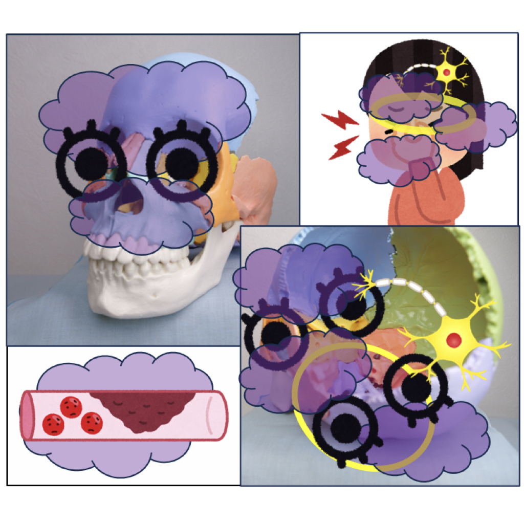 頭蓋骨・頚椎の歪み:ズキズキする痛み→血流が乱れ脳神経を圧迫。